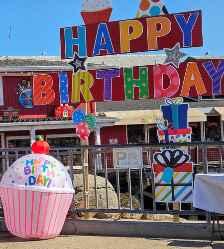 - Birthday Cake: A sealife-themed cake will be served at 3:30 p.m. at the Wharf Tent in front of Abalonetti Bar & Grill.