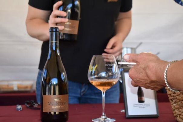 The experience continues with curated wine and food pairings prepared by Ardent Culinaire Catering. Each ticket includes all activities, food and wine tastings, and a take-home McIntyre glass. General admission is $80, with a special wine club member price of $62.