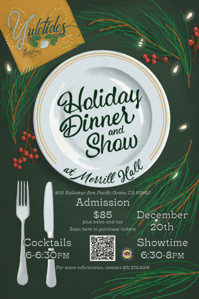 Celebrate the season with an elegant evening of festive dining and live entertainment at the beautiful Asilomar. Enjoy a warm holiday atmosphere, exceptional music, and a delicious culinary experience perfect for anyone looking to embrace the magic of the holidays.