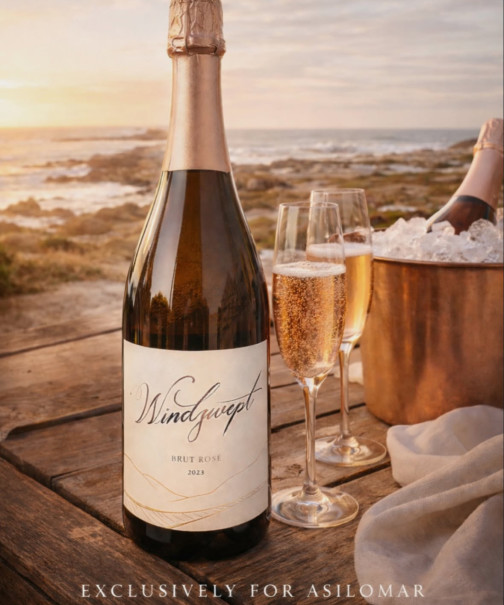 - A bottle of Asilomar's private-label sparkling, Windswept
