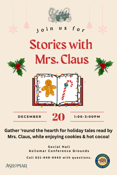 Join Asilomar for a festive afternoon of holiday storytelling with Mrs. Claus!